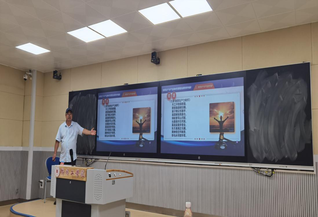 本次活动分为学院形势与政策教研室教师授课展示--专家点评--专家上示范课--集体磨课研讨等环节。在我校形势与政策课程任课教师教学展示环节,蓝静丽老师进行了《建设社会主义文化强国》专题的教学展示,通过问题链的设计层层递进,回应学生的现实困惑。课后,杨席宇博士结合教学实际进行了精准点评与专业指导,从教学目标设定、重难点突破、教学方法创新等多个维度提出了针对性建议,其深刻的见解和细致的点拨让在场教师深受启发。接着杨席宇博士讲授主题为《新质生产力产生的时代背景及其科学内涵》示范课,通过一个完整的教学比赛获奖作品,深入分析教学比赛的设计思路与授课技巧。