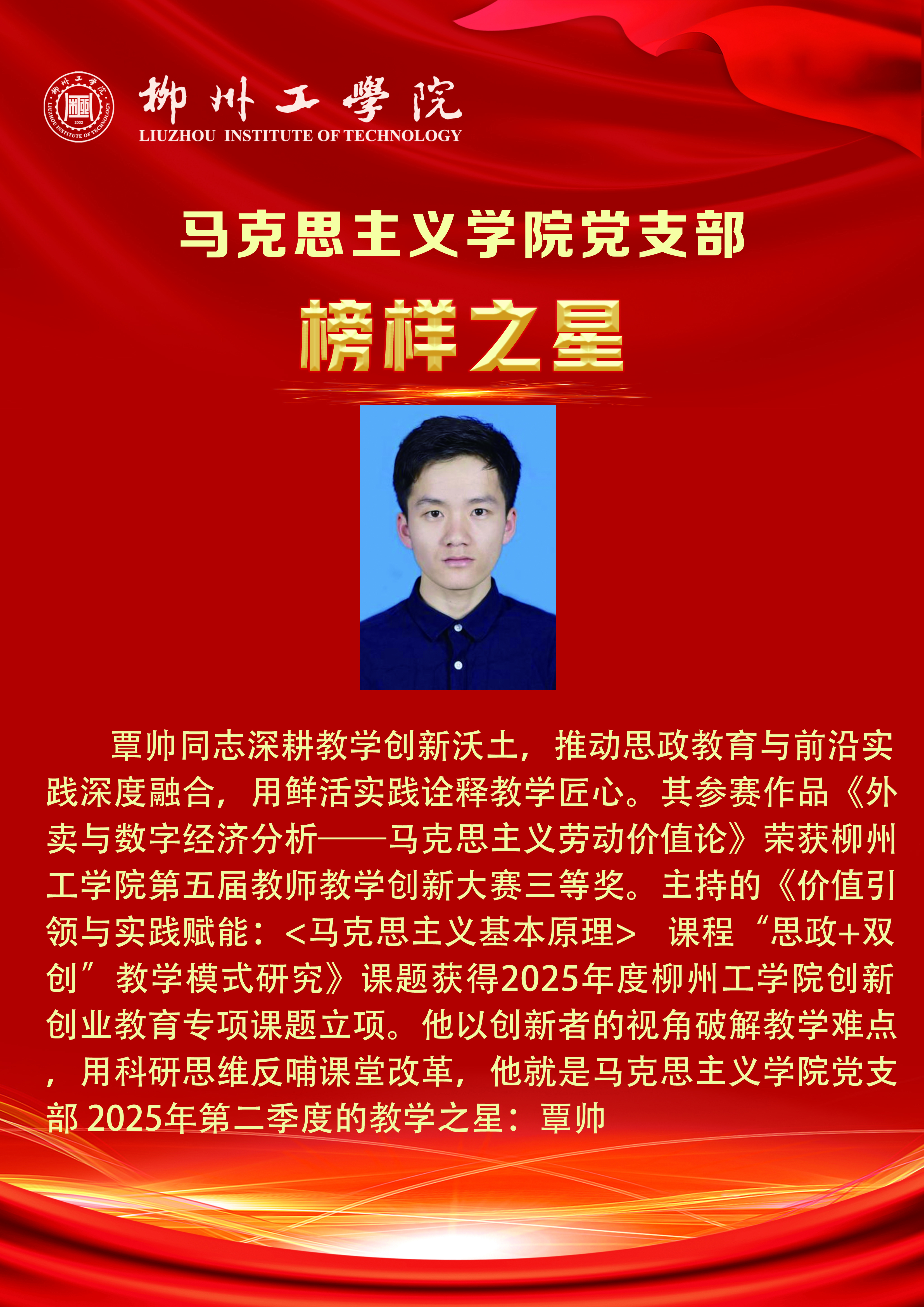 【党建动态】马克思主义学院党支部2025年第二季度榜样之星(教学之星):覃帅