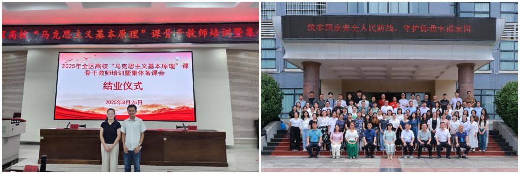 2025年8月21日至25日,由广西壮族自治区教育厅主办、广西民族大学承办的2025年全区高校“马克思主义基本原理”课骨干教师培训暨集体备课会在来宾市委党校举行,柳州工学院马克思主义学院选派韦丽丽、覃帅两位骨干教师全程参训,为学校思政课教学提质增效积累实践经验。