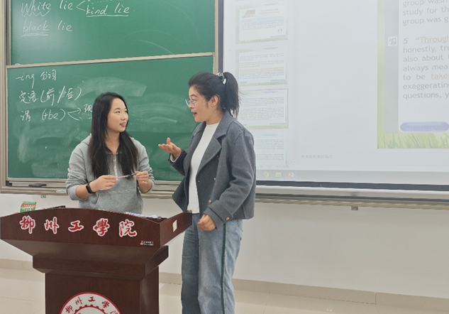 2025年10月下旬,马克思主义学院邓烈兴、李芳、韦艳雪三位教师分别于22日、23日、28日,在北校区T1-304、T1-302及T2-304教室,现场观摩了语言文化与国际教育学院陆俊、林巧捷、谢潘妮三位教师的《大学英语A1》课程授课,并就课程思政的融入与实施开展了深入交流。