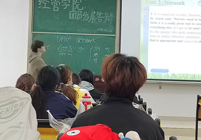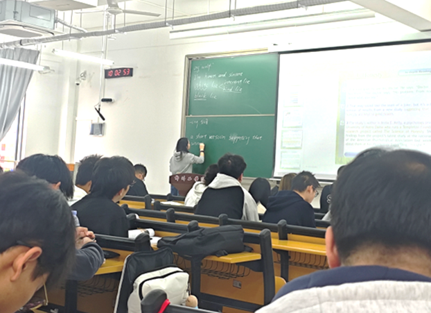 在授课过程中,陆俊老师围绕第三单元“Network”,探讨了网络对青少年的影响,引导学生在网络交流中保持礼貌、尊重他人、遵守网络规范,合理安排上网时间,培养健康的生活习惯。林巧捷老师则以第四单元“Honesty”为主题,结合语法教学与课堂练习,深入探讨了诚实对个人心理健康与身体健康的积极影响,引导学生认识到诚实不仅是道德品质的体现,也是维持良好生活状态的重要因素。谢潘妮围绕第三单元“Network”第四节综合练习部分,在近义词匹配练习、完型填空解题技巧讲解、英汉互译等练习中,引导学生了解并培养理性使用社交网络意识,增强网络信息辨识能力。三位授课教师均在《大学英语A1》课程中巧妙融入了思政元素,展现了语言课程与思想政治教育的有机融合。
