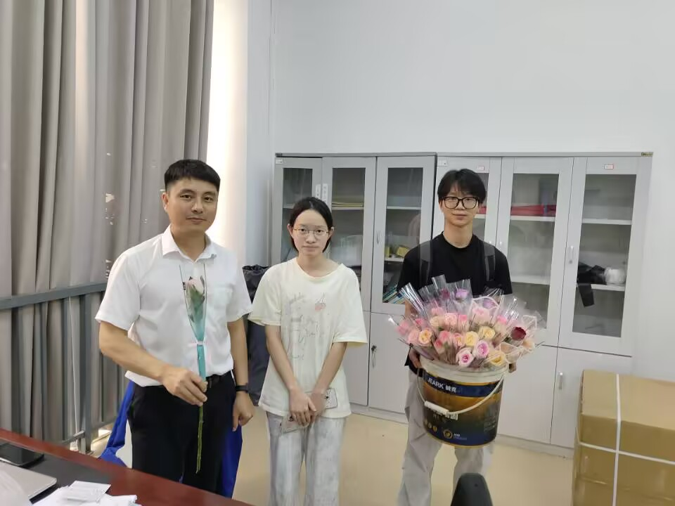 9月10日当天,学生党员代表们分组行动,有序走进教师办公室、教研室。见到老师后,大家恭敬地递上贺卡与鲜花,轻声道一句“老师,您辛苦了,教师节快乐!”老师们接过这份满含心意的祝福,脸上露出欣慰的笑容,纷纷与学生亲切交流,不仅肯定了大家的用心,还鼓励同学们珍惜学习时光,在成长道路上脚踏实地、奋勇前行,现场氛围温馨融洽。