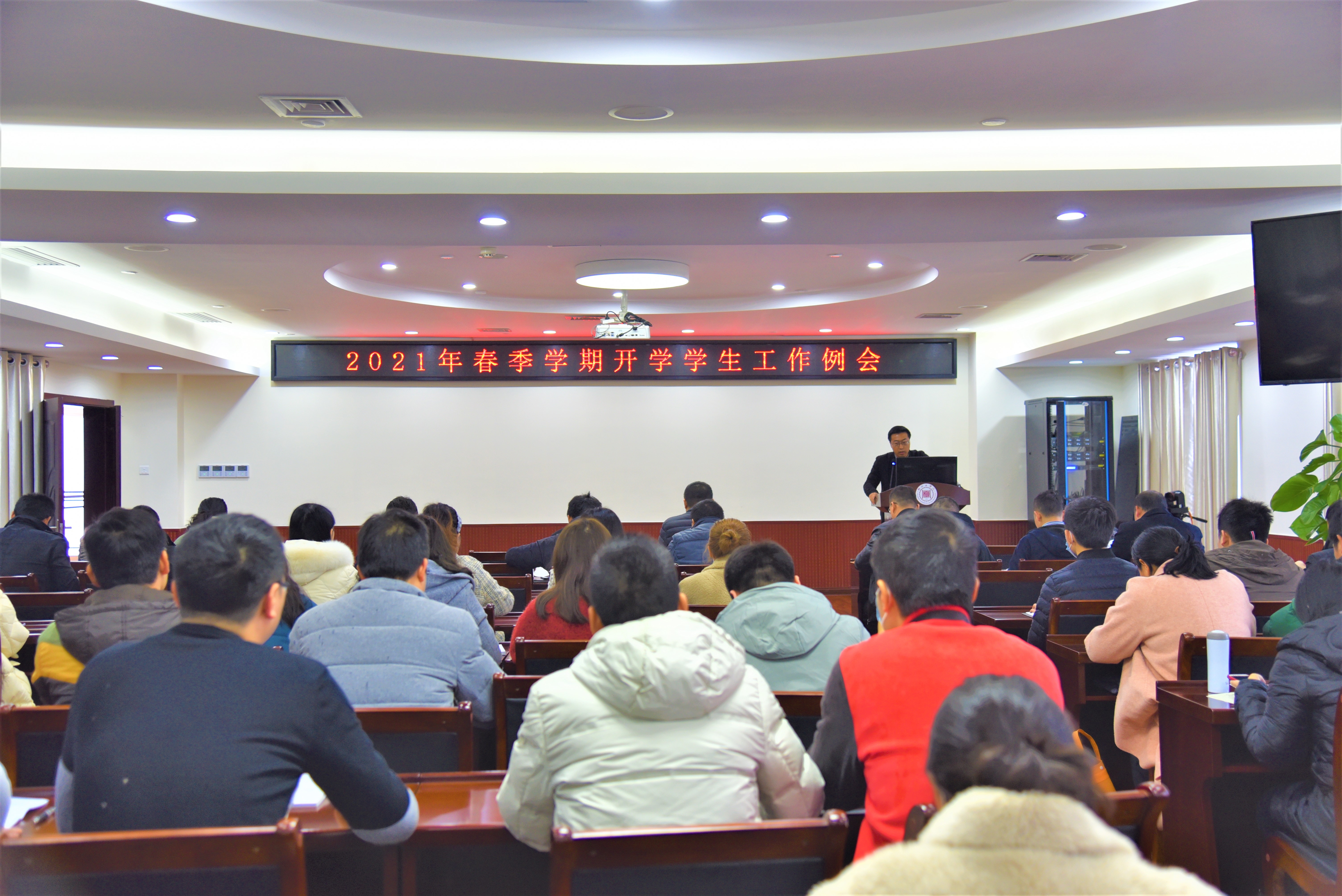 为统筹做好2021年春季学期开学初各项工作,3月11日下午,我校在18楼多功能会议室召开2021年春季学期开学学生工作会议。学校党委副书记李辉,学生工作部、团委、人民武装部全体人员,各系党总支副书记,专职辅导员参加会议,会议由学生工作部部长许孝忠主持。