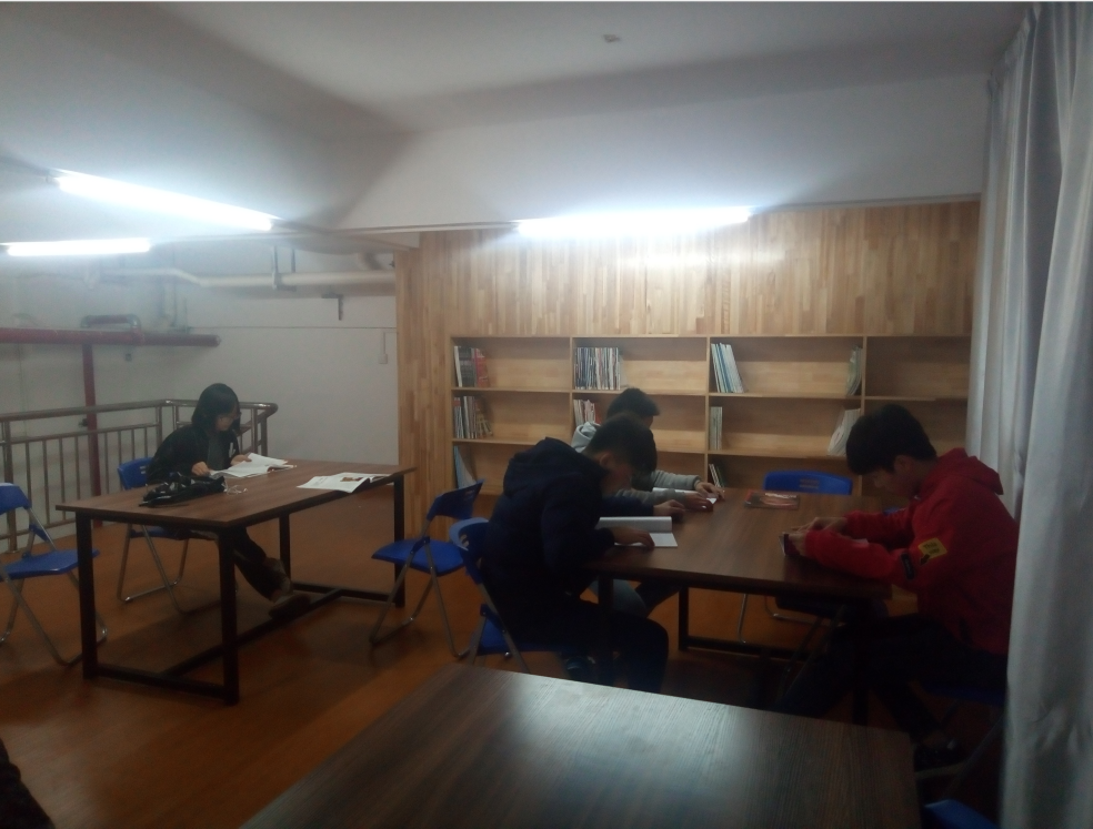 学生在公寓多功能室进行自习