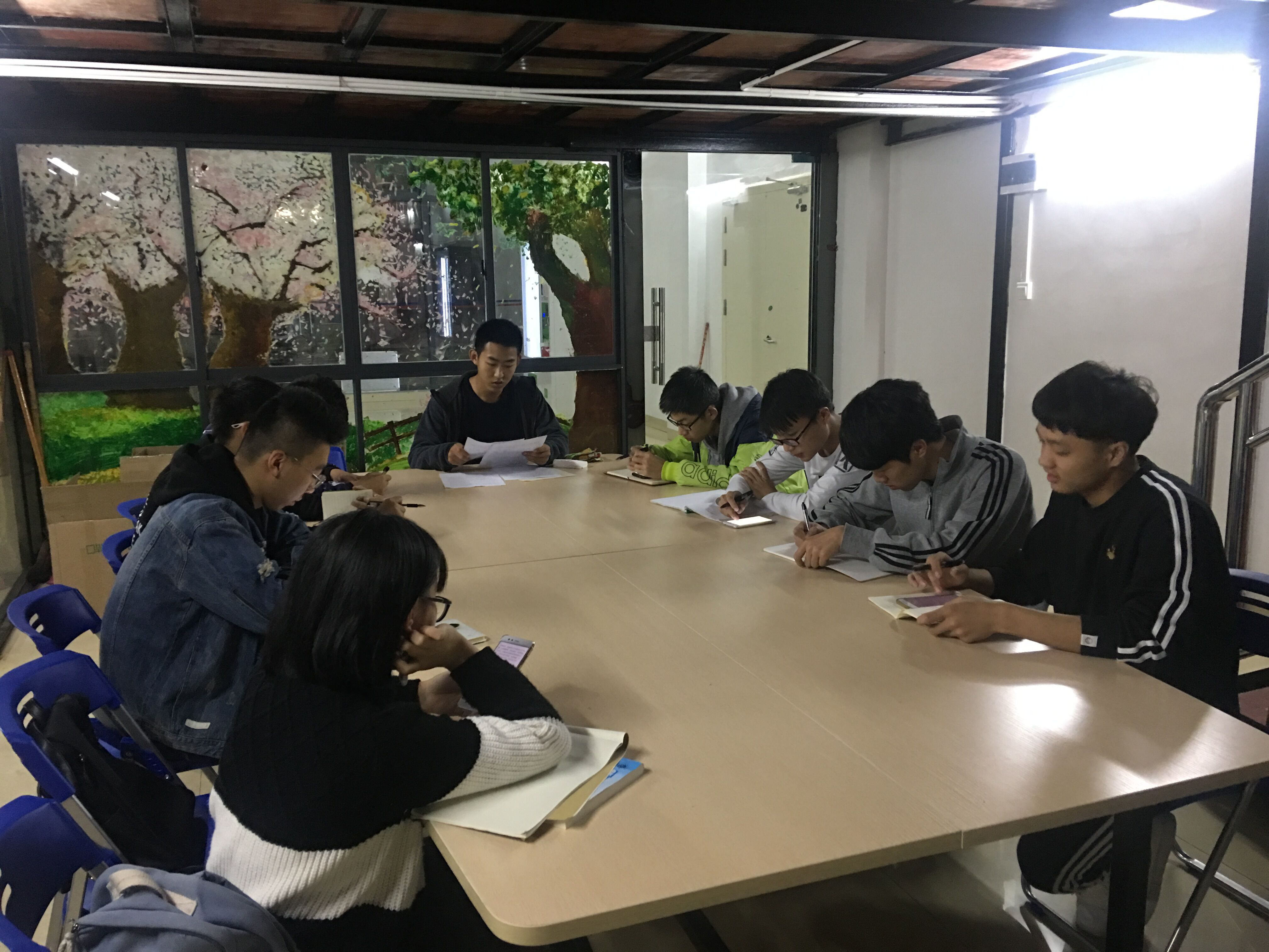 学生组织在公寓多功能室进行集体学习