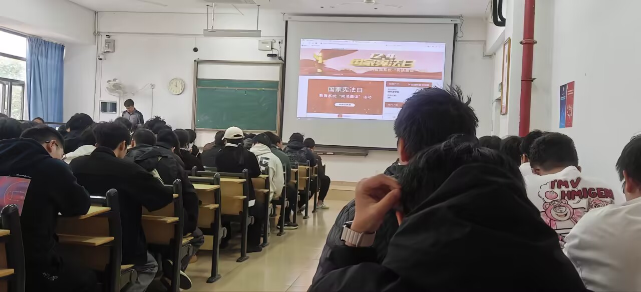 在我国第十二个国家宪法日到来之际,为深入学习宣传贯彻习近平法治思想,推动宪法精神在青年学子心中落地生根,12月4日上午10:00-11:20,柳州工学院校院两级学生组织近百名青年学子齐聚云端,通过教育部全国青少年普法网同步观看2025年教育系统“宪法晨读”活动网络直播,以庄重的线上晨读仪式致敬宪法、感悟法治力量。