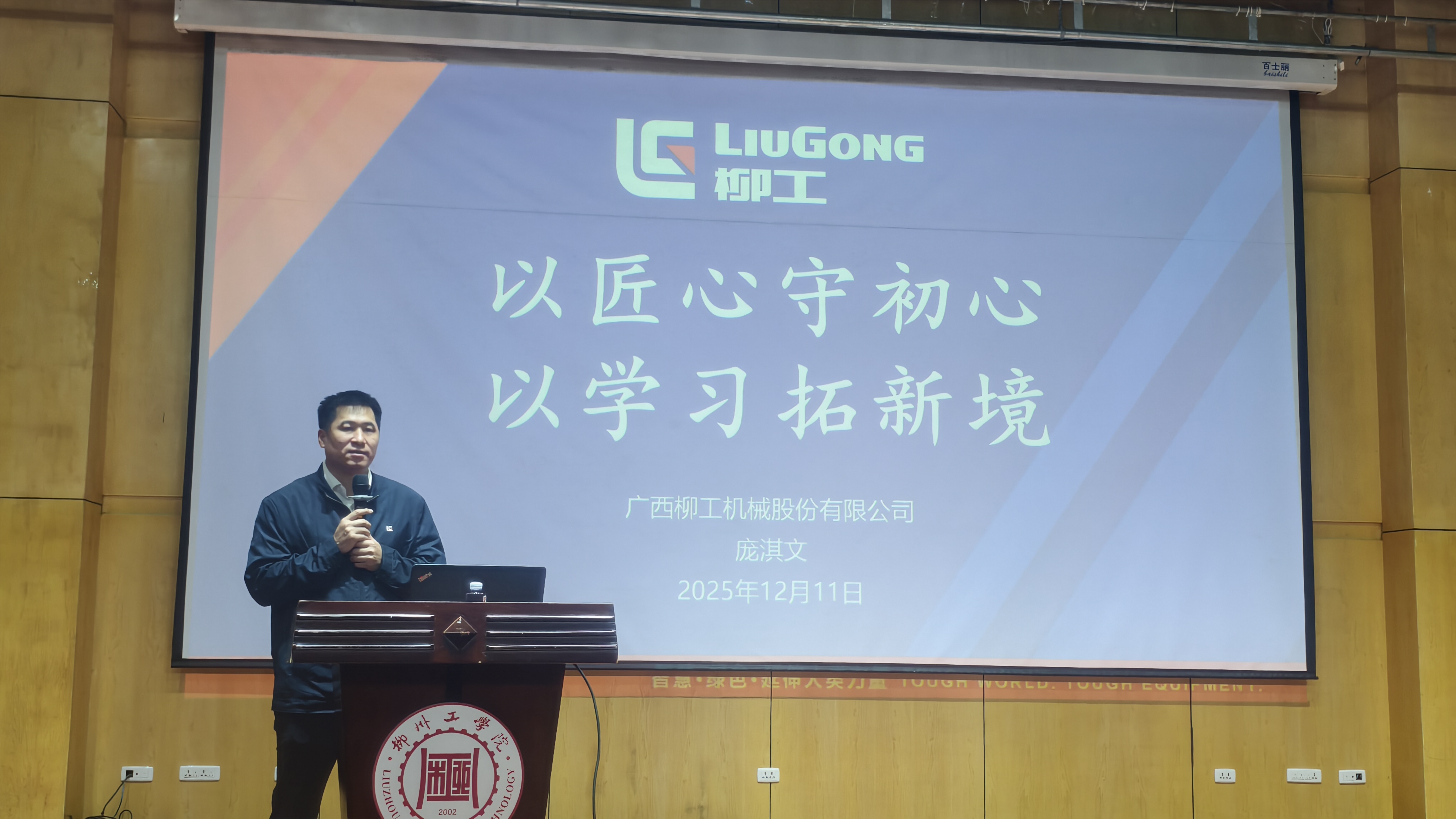 12月11日,柳州工学院学术报告厅内座无虚席,“大国工匠进校园”专题讲座在此隆重举行。广西柳工机械股份有限公司传动件公司制造总监、特级技师庞淇文受邀担任主讲嘉宾,以“以匠心守初心,以学习拓新境”为主题,为现场师生带来了一场兼具思想深度与实践温度的精神盛宴。