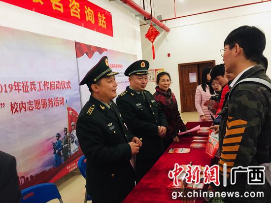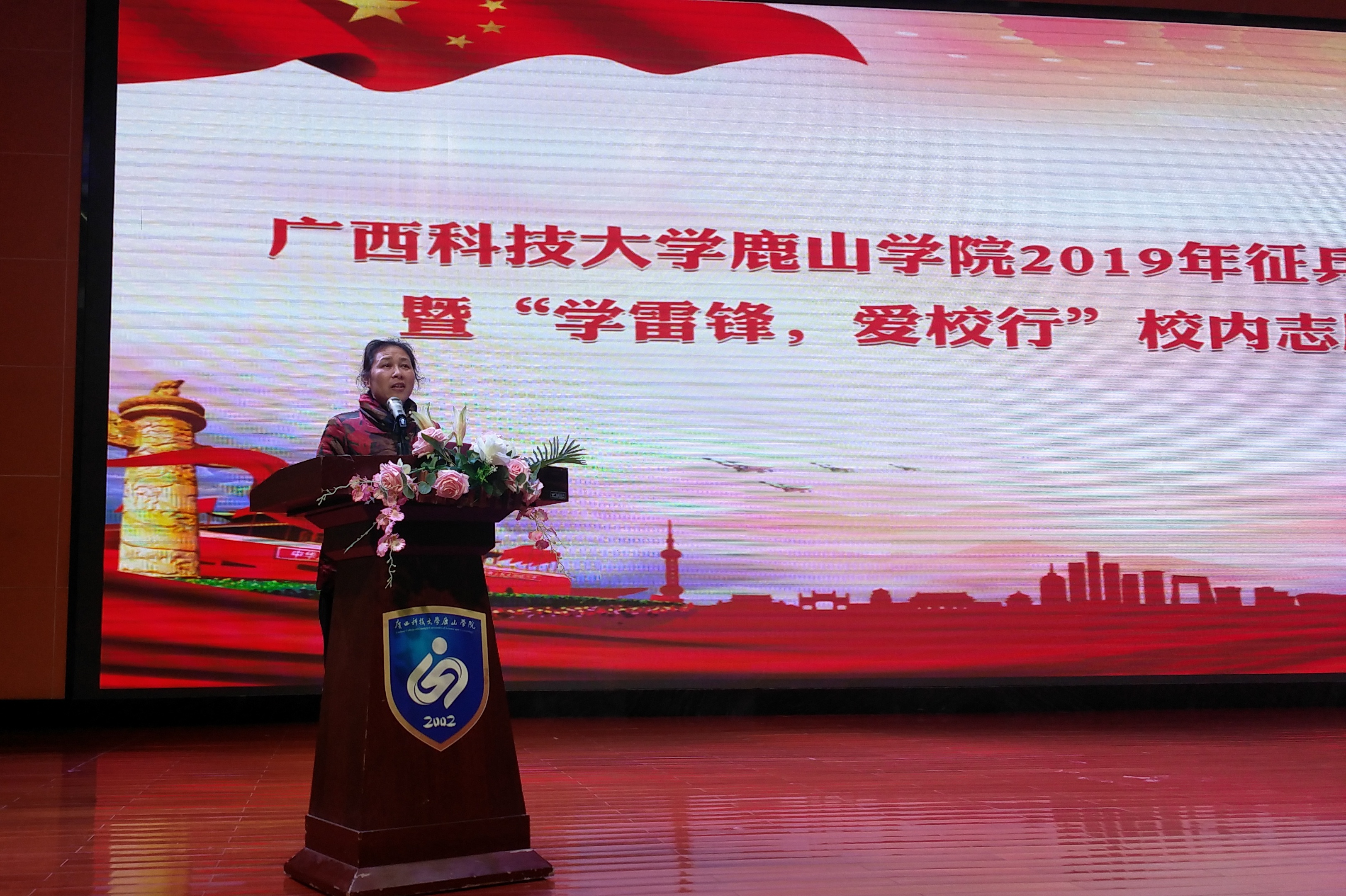 3月5日,我院2019年大学生征兵工作启动仪式暨“学雷锋,爱校行”校内志愿服务活动在大学生活动中心举行,正式拉开了我院2019年征兵工作序幕。柳州市城中区人民武装部部长于延伟,柳州市城中区人民武装部政委曹令柱,学院党委副书记、纪委书记何颖梅出席启动仪式。