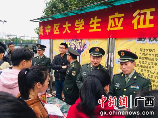 柳州市城中区人民武装部部长于延伟进行征兵宣传讲话