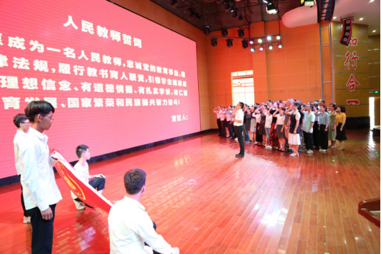 大会在雄壮的国歌声中拉开帷幕。全体参会人员共同观看了我院2019年上半年大事记视频。随后2019年新入职的教职员工纷纷登台亮相,并面对校旗郑重入职宣誓。