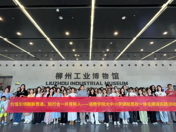 为推动大中小学课程思政一体化项目建设,展示语言文化与国际教育学院英语专业在课程思政方面的育人成果,近日,英语专业围绕“价值引领融脉贯通·知行合一共育新人”主题,在柳州工业博物馆、龙潭公园侗寨、掐丝珐琅非遗基地以及柳州工学院汽车工程学院、信息科学与工程学院等地,组织开展了一系列课程思政实践活动。
