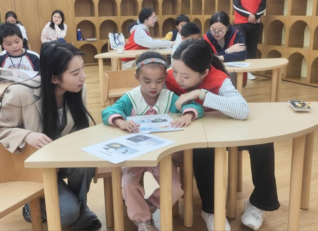 2025年11月5日上午,柳州工学院语言文化与教育学院学生党支部与院青年志愿者协会联合柳州市图书馆、柳州市星英豪文化传播有限责任公司,在柳州市图书馆柳东馆少儿活动室共同举办了“冬日书香润童心”英语绘本阅读活动。活动将语言学习与故事讲述、趣味游戏和艺术体验相融合,志愿者全程陪伴引导,有效激发了孩子们的英语学习兴趣,提升了他们的语言表达与文化感知能力。