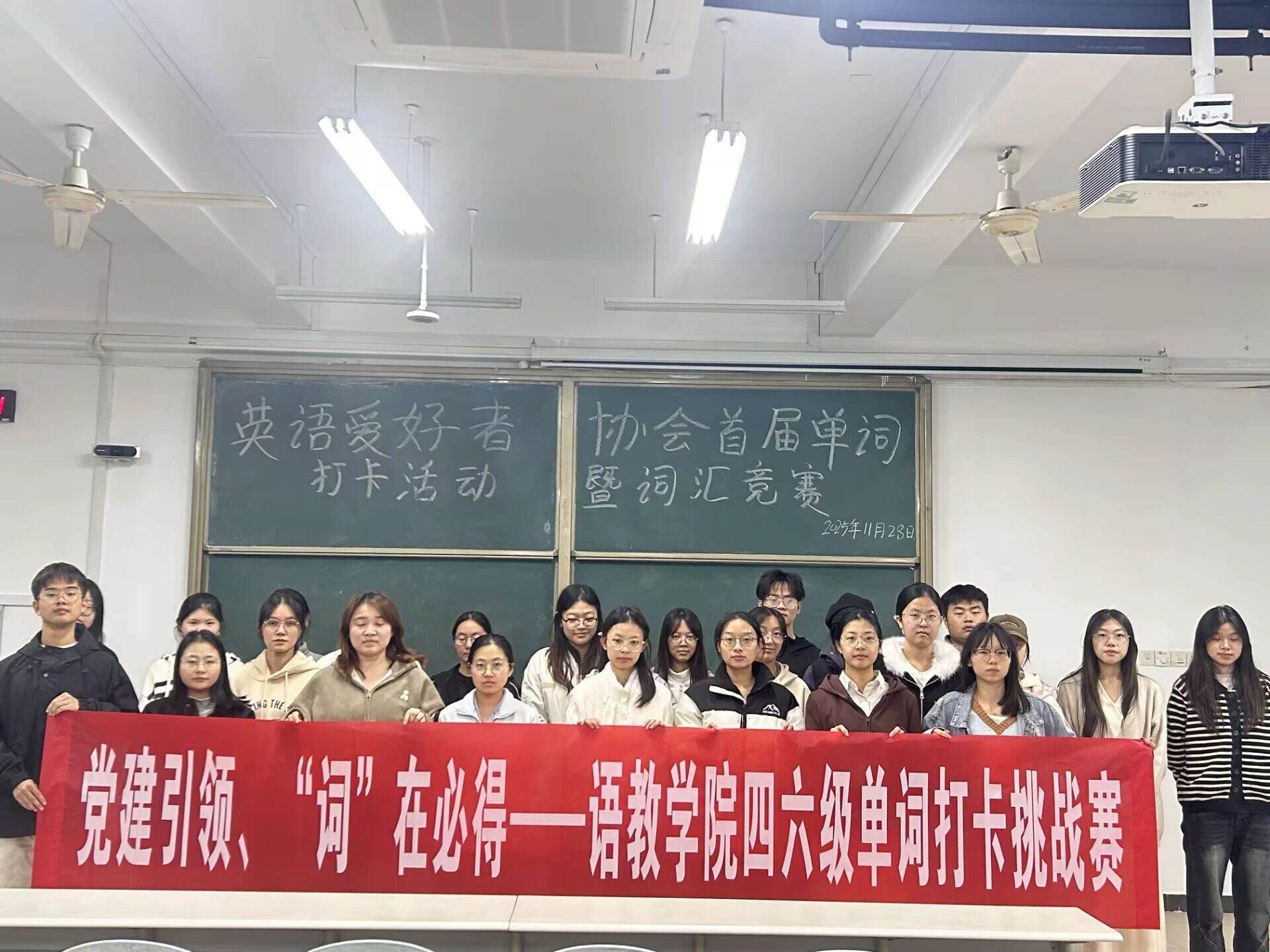 为积极响应学校本科教学合格评估工作部署,扎实推进学风建设,营造笃志勤学的校园学习氛围,助力同学们高效备战全国大学英语四六级考试,柳州工学院语言文化与国际教育学院学生党支部联合英语爱好者协会,于2025年11月23日至27日成功举办“党建引领 ‘词’在必得”英语四六级单词打卡挑战赛。活动共吸引学生党员、入党积极分子及英语爱好者等100余名同学积极参与。