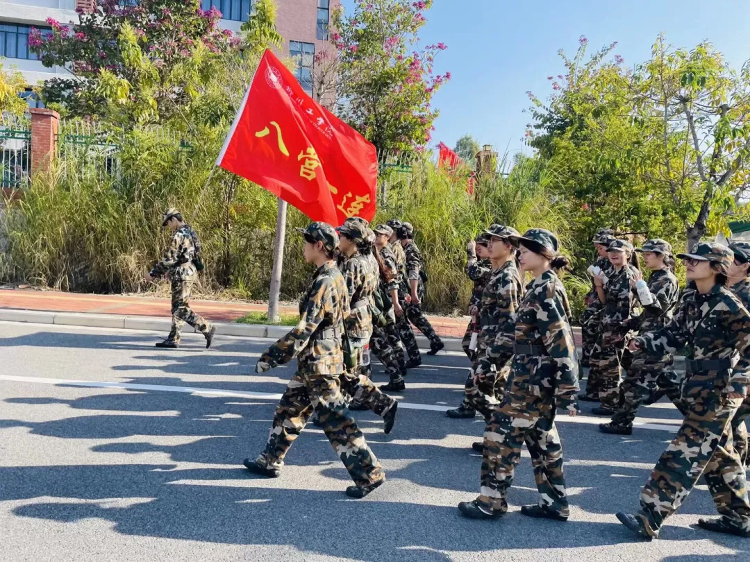 汇报大会上,八营学子军容严整、士气高昂。他们以整齐划一的队列、响彻云霄的口号、挺拔飒爽的英姿,奉献了一场力与美交融、刚与柔并济的精彩展示,生动诠释了新时代青年果敢勇毅、奋发向上的精神风貌。