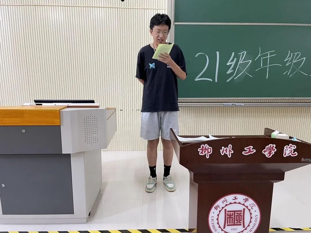 接下来,21级各班班长上台向同学们分享感悟。他们表示在过去的一学年里,同学们互帮互助,氛围融洽,集体荣誉感强,取得了优异的成绩。
