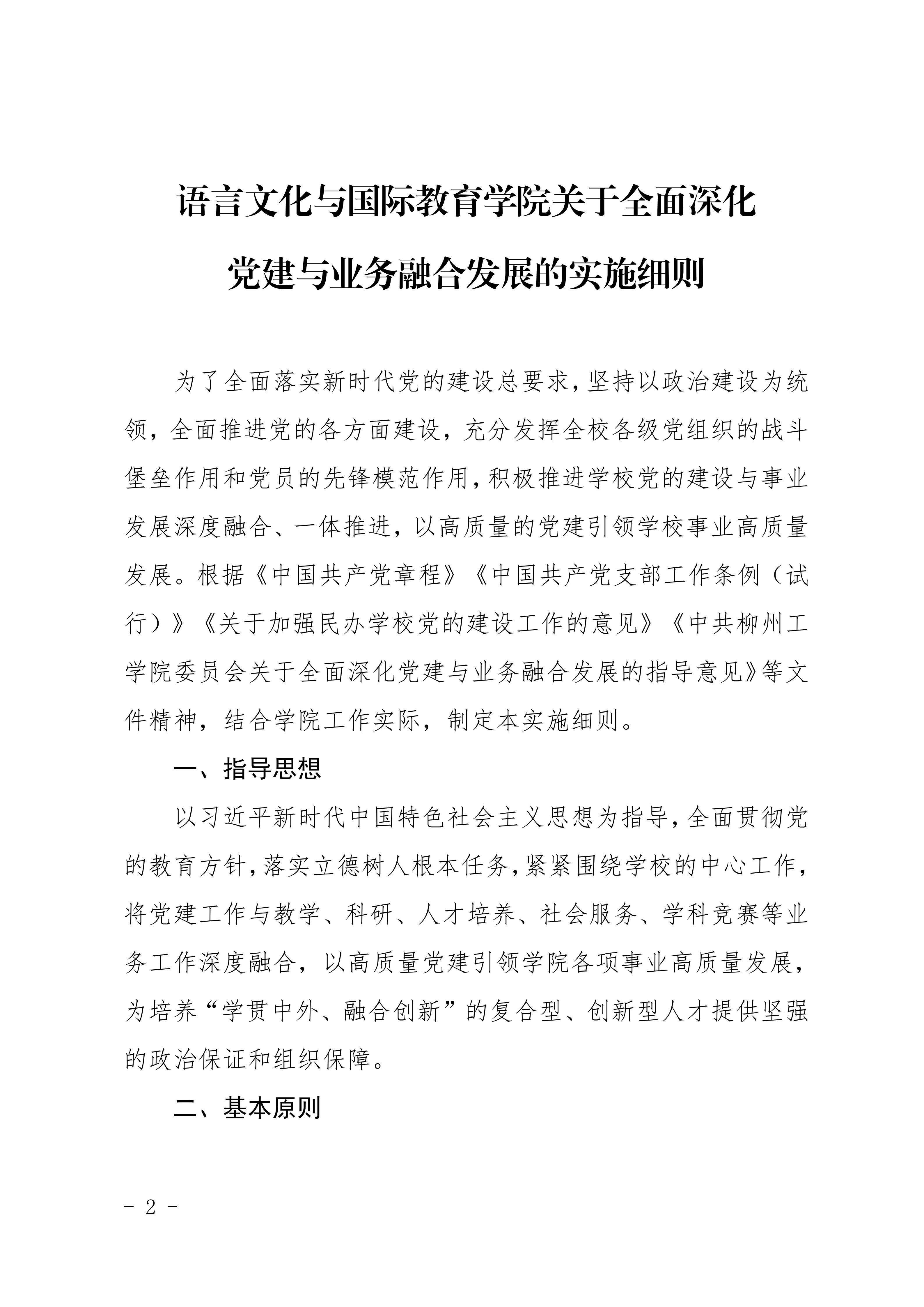 关于印发《语言文化与国际教育学院关于全面深化党建与业务融合发展的实施细则》的通知