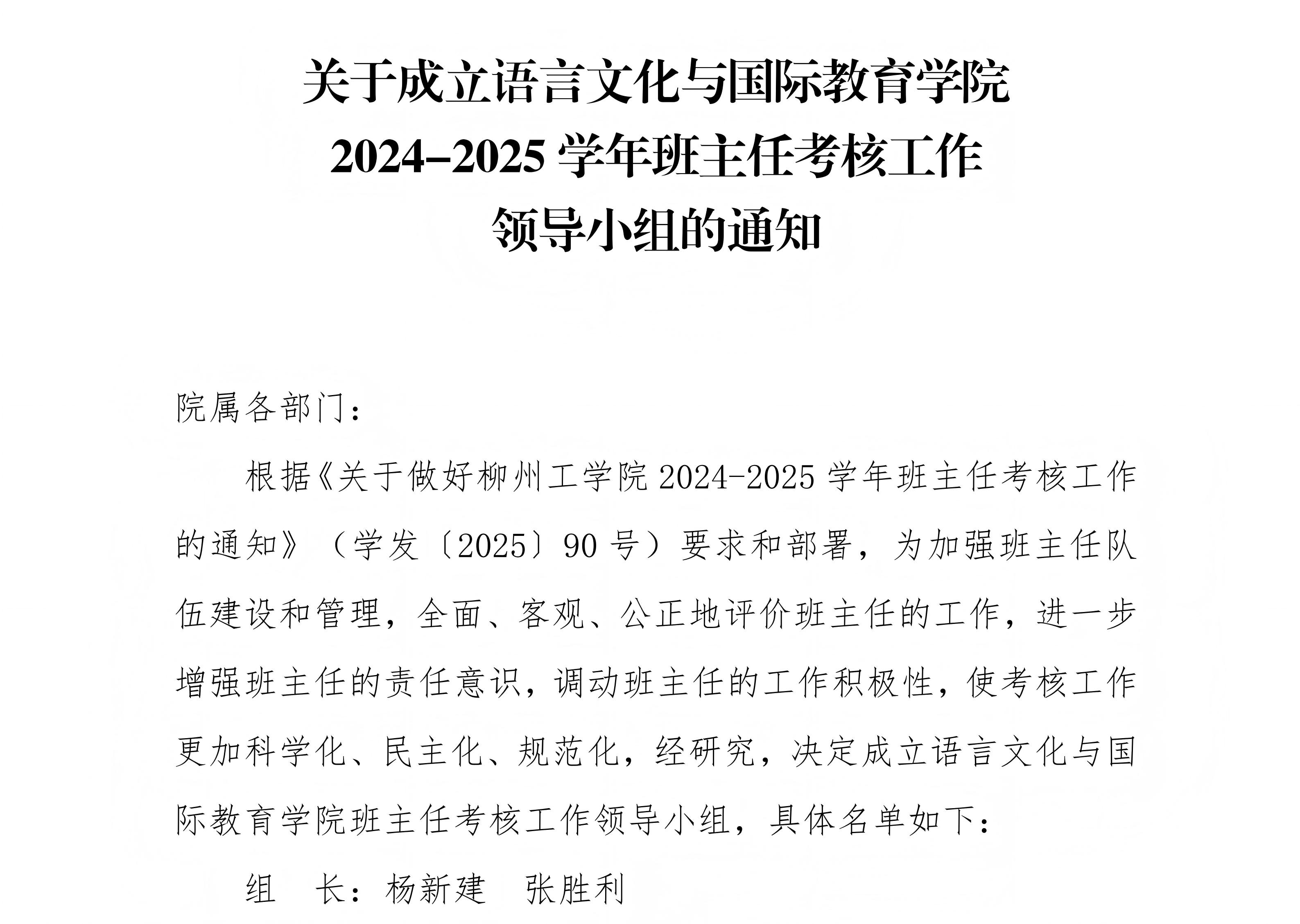 关于成立语言文化与国际教育学院2024-2025学年班主任考核工作领导小组的通知