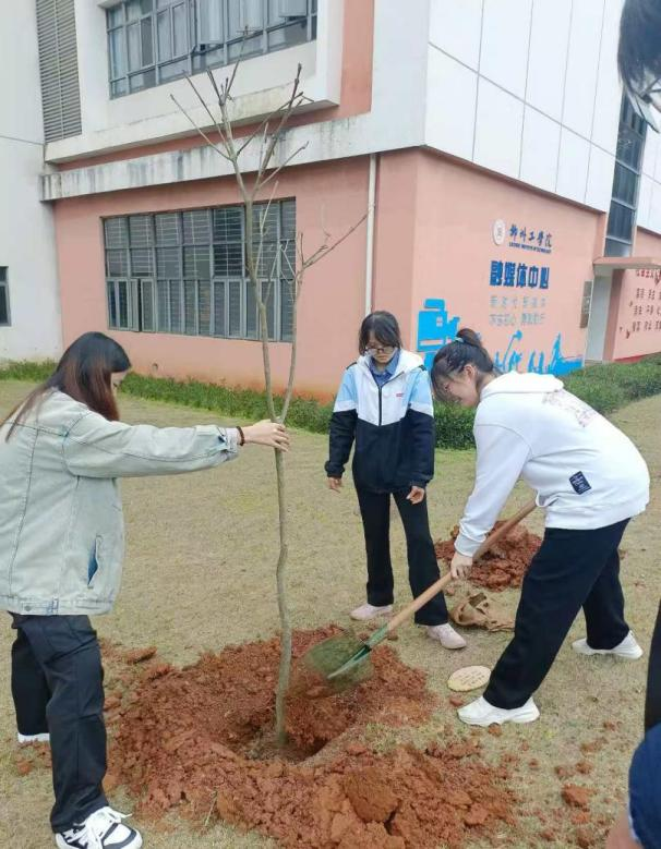 学院启动“艺心植绿,共筑希望”植树志愿服务活动,2024级各班级团支部手持工具,分组奔赴南校区校园西侧绿地。挥锹挖坑、扶苗培土、浇水灌溉,各环节严谨细致,严格遵循植树标准,现场秩序井然。
