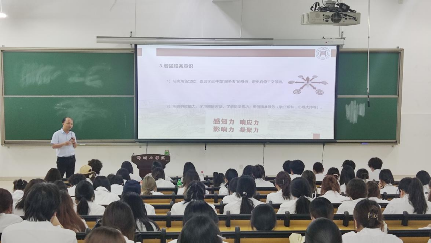 理论课堂为参训学员筑牢思想根基。学院结合“青马工程”解读工科院校青年干部的使命担当,深入解读学生干部的角色定位与能力要求,引导学员树立“服务为先、权责统一”的工作理念。设计艺术学院党总支书记文海燕结合学院专业实际,引导干部将个人成长与专业发展绑定,明晰工作方向。