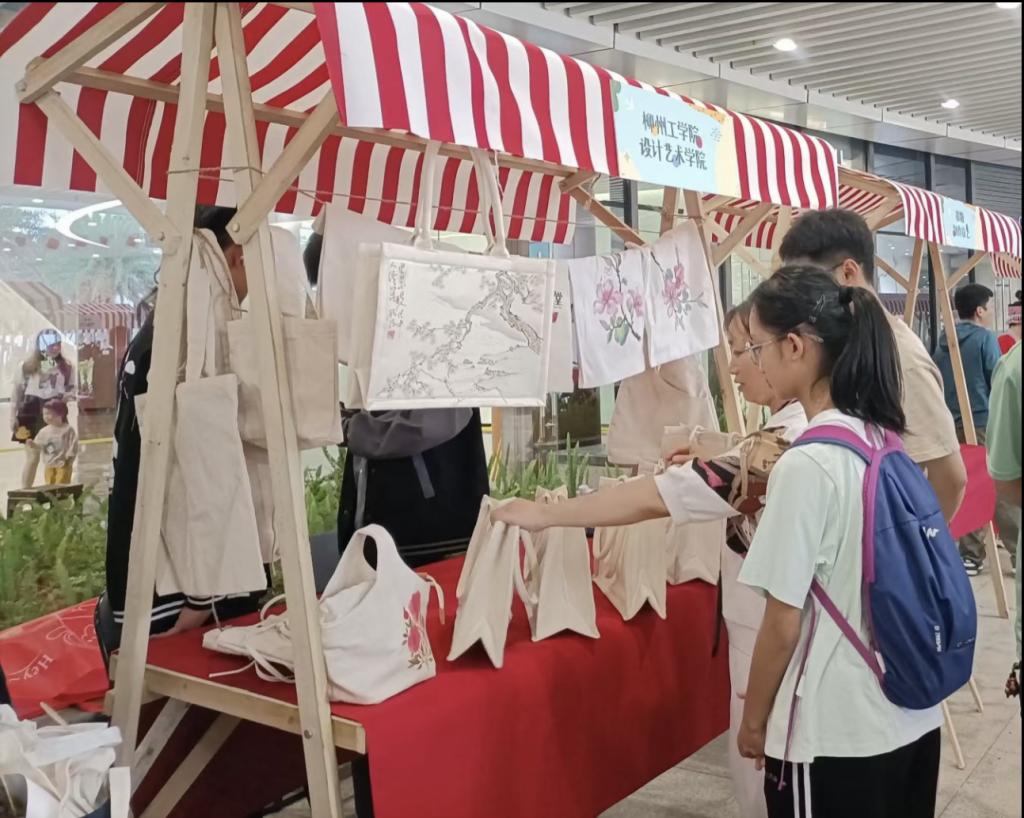 柳州工学院设计艺术学院师生前往柳州市群众艺术馆开展“三月魅力壮乡,手绘紫荆龙城”活动,通过非遗产品、文创手工、生活艺术类产品的展示和售卖,让参与活动的市民能在有趣的市集之中感受非遗与传统文化的独特魅力,同时也展现出民族团结面貌、民族深情友谊。