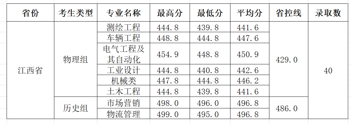 柳州工学院2025年江西普通批第一次投档情况