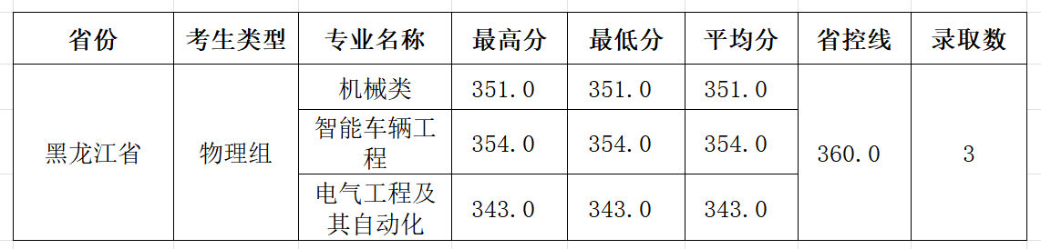 柳州工学院2025年黑龙江普通批第一次征集投档情况