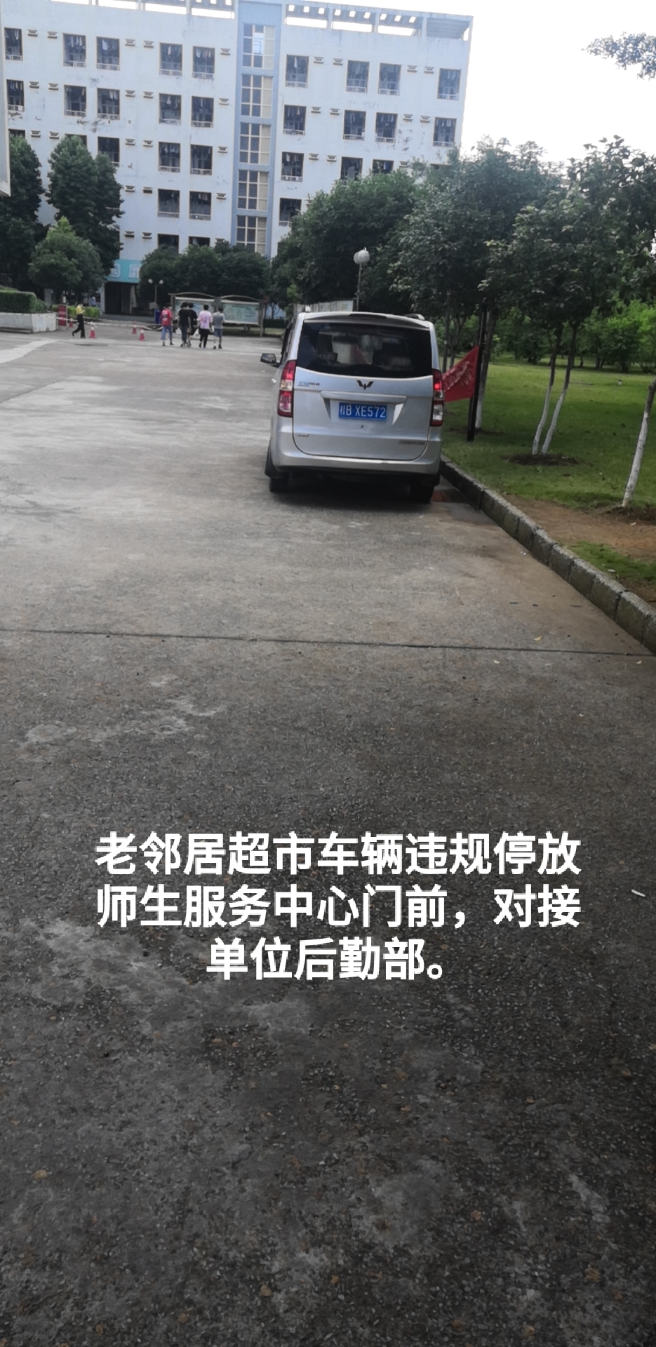 2.联系单位:后勤部,违规人:老邻居超市送货人,违规停放地点:师生服务中心前消防通道。违规次数:1次