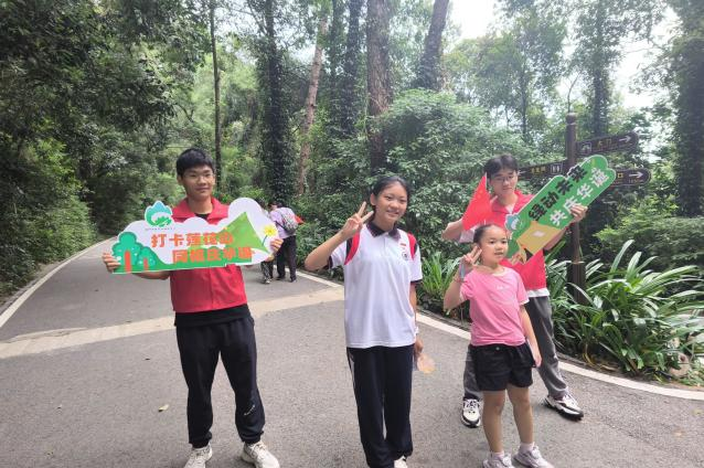 活动当天,三门江国家森林公园内人声鼎沸,秩序井然。现场精心设置了“植物合影打卡”“柳州市莲花山保护条例猜灯谜”“植物书签现场制作”“投壶小游戏”“徒步登山打卡”等多个游戏站点。志愿者们忙碌而有序地穿梭其中,化身向导,耐心指引方向,在他们的引导下,游客们顺利获取了任务卡,开启了愉快的环保之旅。他们不仅是秩序的维护者,更是环保知识的传播者。他们利用游戏的环保任务,巧妙地将环保知识融入其中,让游客在完成任务的同时,学习到了许多环保知识,增强了自身的环保意识。