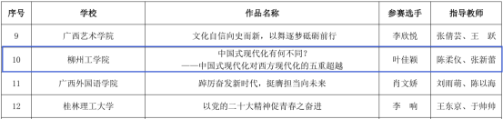 近日,自治区党委教育工委、自治区教育厅公布了广西高校大学生党的二十大精神理论微宣讲比赛的获奖名单。我校荣获优秀组织奖,我校报送的作品荣获二等奖1项、优秀奖2项。