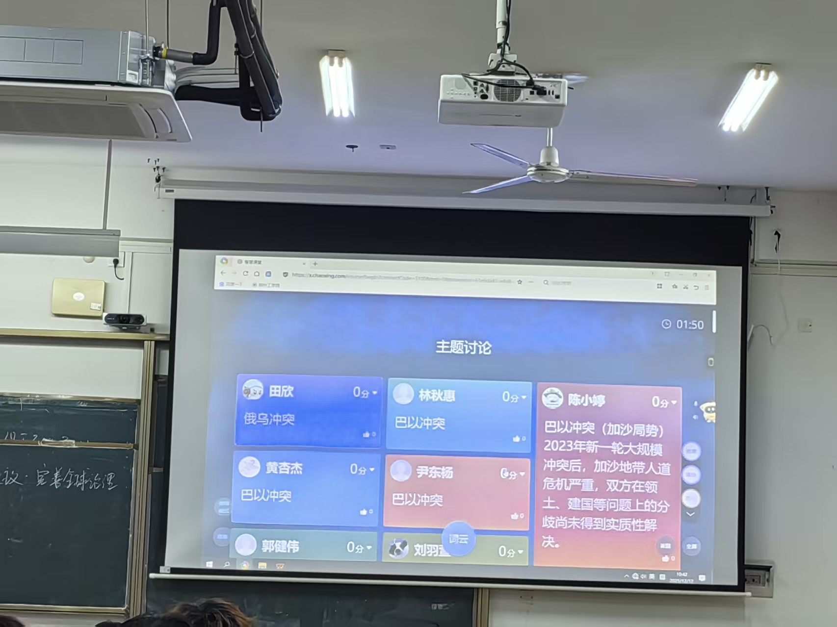 本次听课课程为马克思主义学院专任教师蓝静丽主讲的“形势与政策”课程。课堂上,蓝静丽围绕“践行多边主义,完善全球治理”主题,结合当下国际社会中俄乌冲突、巴以冲突、泰柬冲突等鲜活案例,以生动有趣的教学语言、逻辑清晰的教学思路,运用启发式、案例式开展教学。在互动环节,蓝静丽运用超星学习通平台调动学生使用手机在线互动,学生们纷纷通过手机发表自身对多边主义的认识和看法。本次教学课堂氛围轻松活跃,师生互动频繁,充分体现了以学生为中心的教学理念。