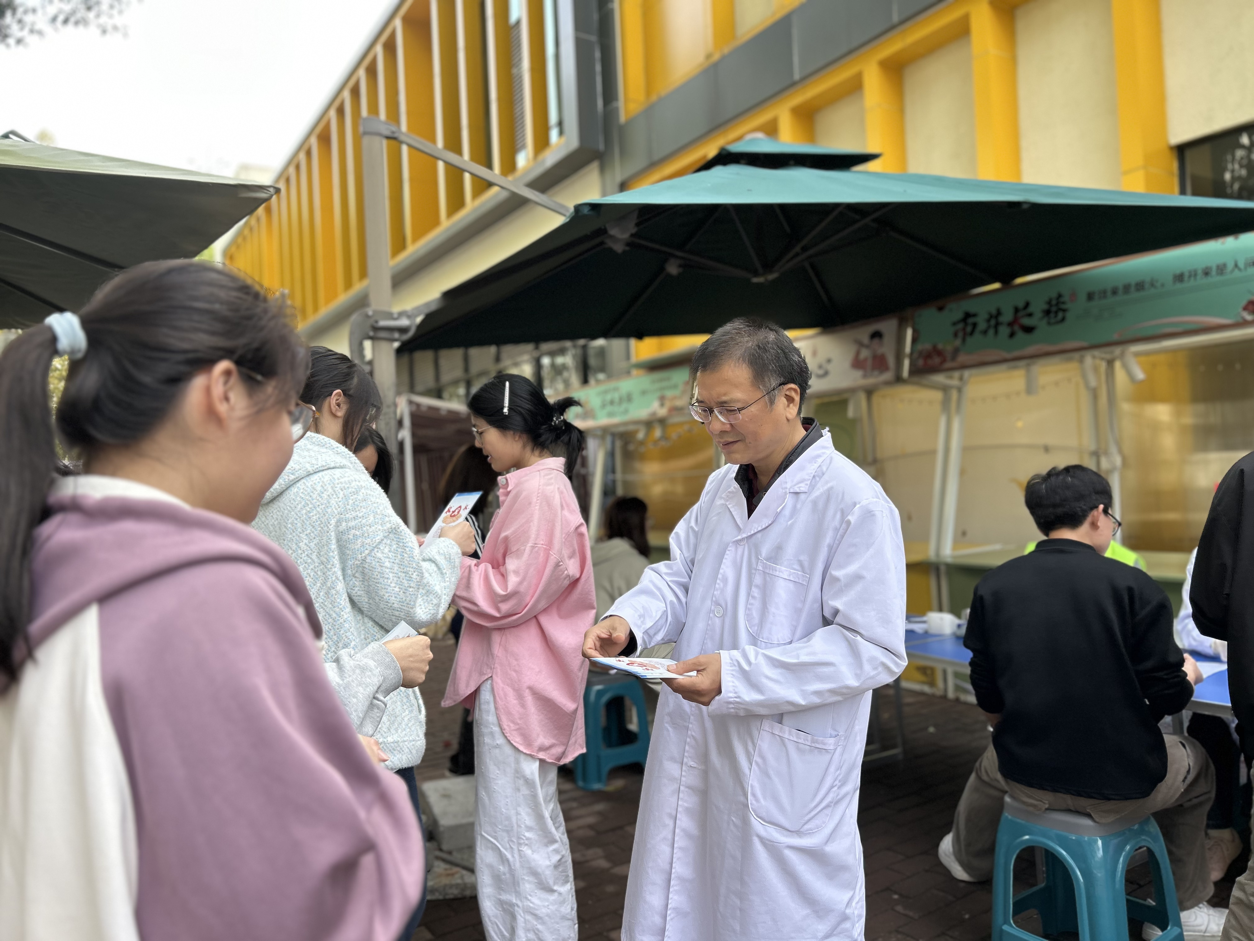 活动当天,现场气氛热烈,内容丰富。职教园社区卫生服务中心的医生团队通过生动案例与通俗讲解,为往来师生系统普及了艾滋病的传播途径、科学预防措施以及“早检测、早发现、早治疗”的重要性,有效消除了大家对艾滋病的常见误解与恐惧。