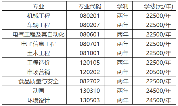 (一)学费标准为: