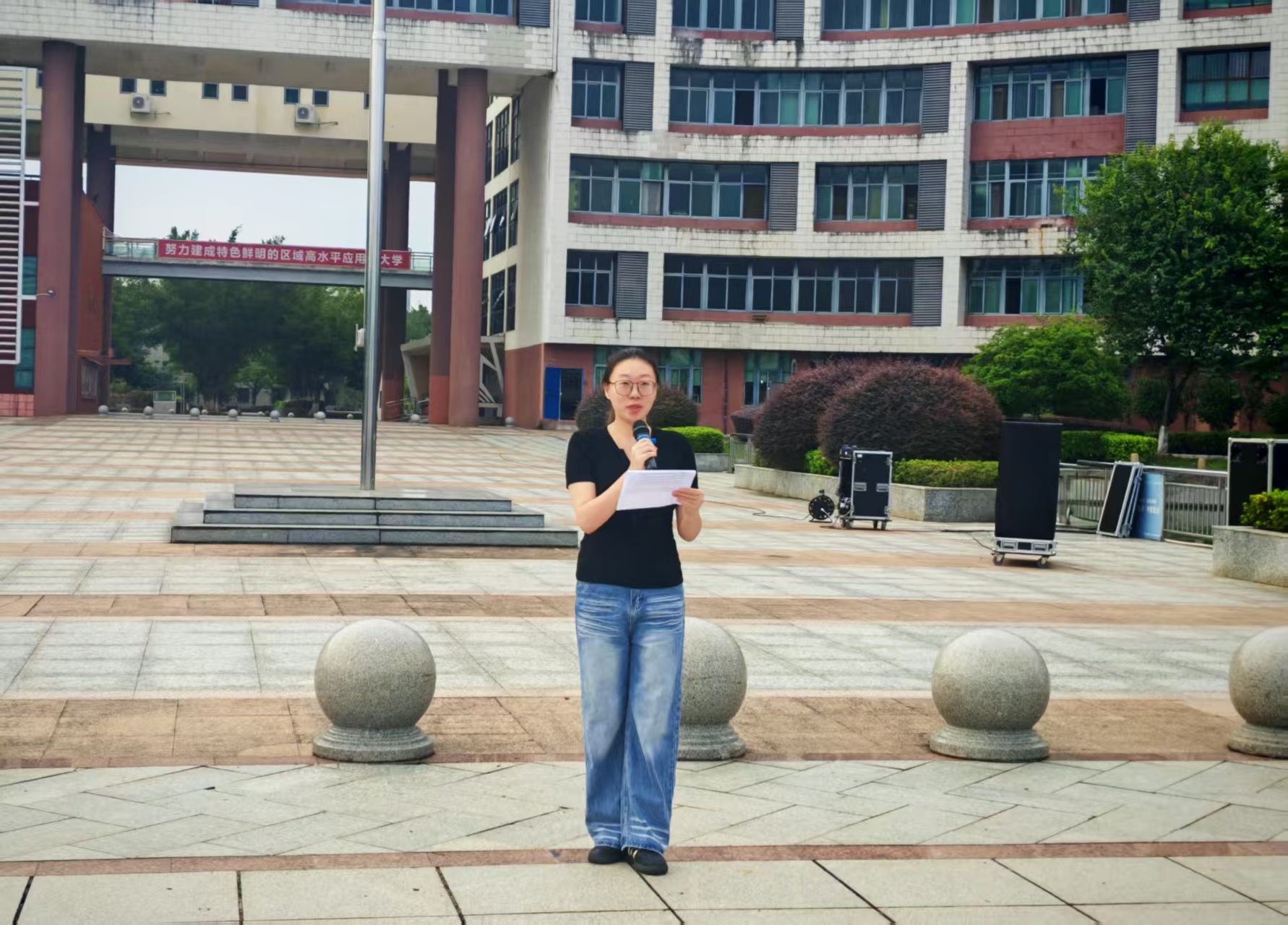 学生第五党支部代表高昌焱同学作题为《厚植爱国情怀,践行青春担当》的国旗下发言。她将爱国情感与学校合格评估工作紧密结合,向全体同学发出倡议:作为新时代大学生,既要深耕专业知识、锤炼过硬本领,更要以迎接合格评估为契机,将个人成长融入校园发展。通过课堂专注互动、课后扎实实践,以严谨态度和主动作为助力评估工作,用实际行动诠释爱国与担当的时代内涵。
