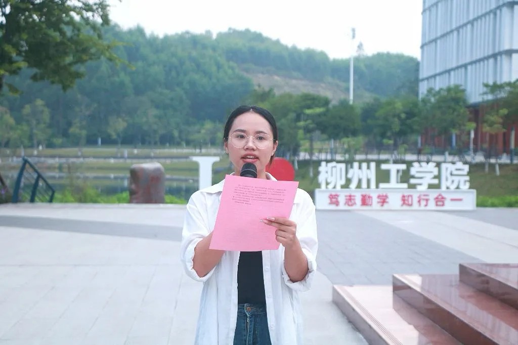 翻译251班周晶鑫作为学生代表发言。她分享了新学期的展望与规划,指出大学是人生的宝贵新阶段,应以“笃志勤学、知行合一”校训为行动圭臬,主动规划方向、踏实积累知识,以专业学习为舟、实践行动为帆,在大学生活中努力成为追光者,绽放青春风采。