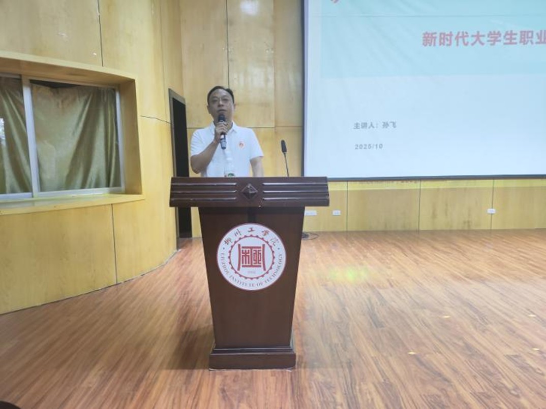 活动最后,机械工程学院还邀请了柳州国轩电池有限公司综合管理中心副总监孙飞做《新时代大学生职业规划》职业生涯规划专题讲座。孙飞结合自身15年人力资源管理经验和实际案例,深入浅出地讲解了如何进行科学的职业规划。从自我认知、职业探索到目标设定、行动计划,为同学们提供了一套系统而实用的职业规划方法。