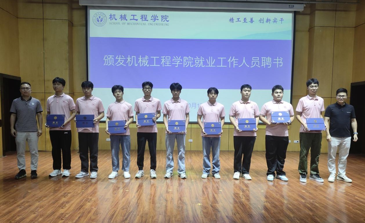 会上,辅导员姚通淮、容宽为就业工作人员颁发聘书。