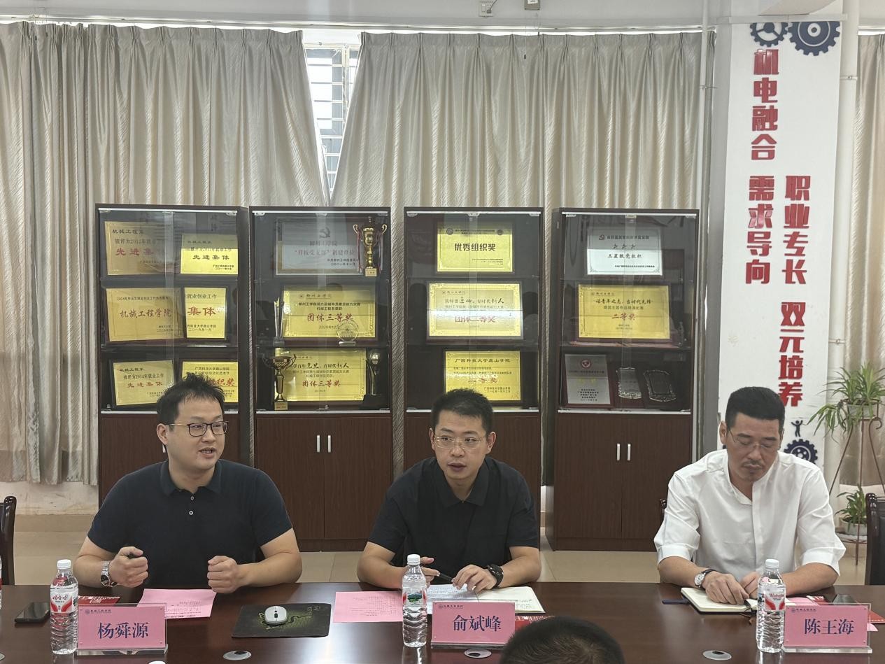 宁波市象山县人力资源和社会保障局一行由人才开发和市场科副科长俞斌峰带队,宁波智潮模具产才协同发展中心负责人陈王海,浙江金潮教育科技有限公司校企合作业务总监杨舜源等企业代表到校参会,柳州工学院招生就业处处长李嘉迪、信息科学与工程学院院长王一波、机械工程学院领导班子及教师代表共同参会,为校地企合作与产才研融合发展谋篇布局。会议由机械工程学院院长张宏献主持。