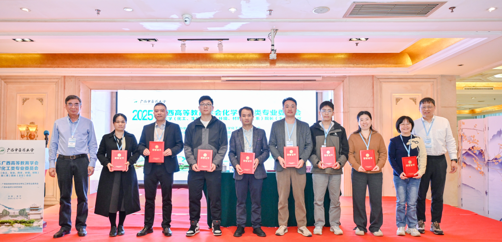 12月12日—14日,2025年广西高等教育学会化学化工类专业委员会暨化学(化工、生化、药学、环境、材料)院(系)院长(主任)会议在南宁顺利召开。广西高等教育学会化学化工类专业委员会主任委员、广西师范大学梁宏教授,广西中医药大学党委常委、副校长肖健教授等专家学者以及来自区内的广西29所高校化学化工类专业负责人、教师代表及支持单位110余名代表齐聚一堂,围绕学科建设、人才培养、教学创新、产教融合等主题深入研讨。柳州工学院食品与化学工程学院副院长李玉、化工教研室主任陈勇等一行3人参加会议。