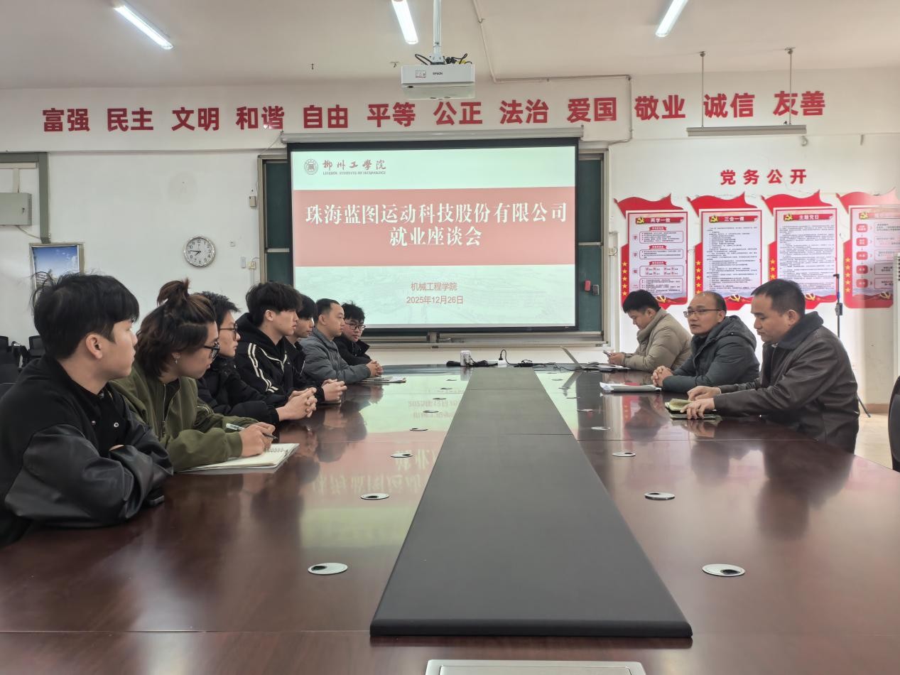 为扎实推进毕业生就业工作,深化校企协同育人,12月26日,机械工程学院在一实323会议室举办了珠海蓝图运动科技股份有限公司就业座谈会。机械工程学院院长张宏献、副院长张树林、辅导员郭凯、姚通准共同出席会议,与珠海蓝图运动科技股份有限公司进行签约,并同即将入职的毕业生代表进行了面对面交流。