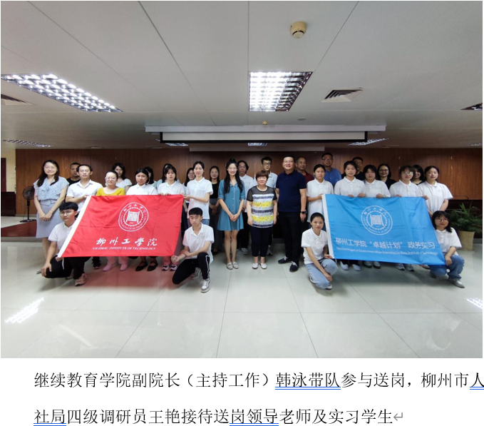2022年7月6-8日经济管理学院开展为期3天的“卓越计划”暑期社会实践集中送岗,本次送岗由经济管理学院党总支副书记(主持工作)刘云辉、副院长张光明、副书记韦祁、团委书记白银河带队,面向东城投资开发集团有限公司、柳州市鱼峰区人民政府、柳州市人力资源和社会保障局、中国银行柳州分行等12家单位,累计送岗学生73人。