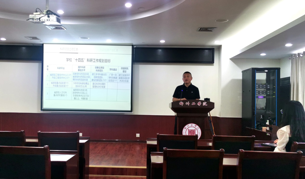 为进一步规范学校科研管理工作,提高科研管理效率和水平,明确科研管理人员工作要求,11月7日下午,科研部在科教楼18楼多功能会议室组织召开了柳州工学院科研工作培训会(含广西高校中青年教师科研基础能力提升项目申报培训)。会议由科研部部长张胜利主持,各二级学院(部)分管科研工作领导、科研秘书,拟申报2023年度广西高校中青年教师科研基础能力提升项目负责人及科研部相关人员共40余人参加。