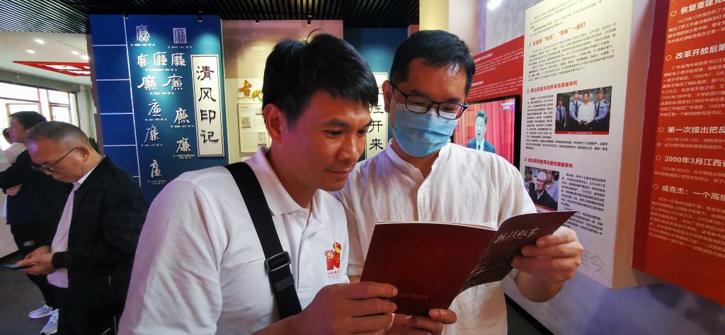 在参观学习过程中,大家紧跟解说员,通过观看视频、听讲解的方式,回顾了中国共产党成立以来在反腐倡廉道路艰苦卓绝长久不懈的历程和取得的成效,深刻感受到违法违纪的危害。其中,独具特色的VR体验区,通过体验廉政铁索桥项目,让人身临其境感受到唯有抵住诱惑经受住考验,走到吊桥另一头,才能迎来喝彩、掌声和赞美,寓意平安踏好人生路,才能迎来圆满人生。而当触摸展厅内的大钟,响起的警示之音警醒着干部们“作风建设永远在路上”,要切实做到“扬清风正气,让警钟长鸣”。