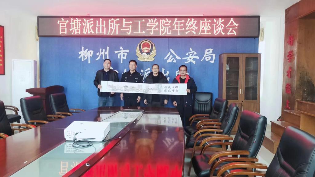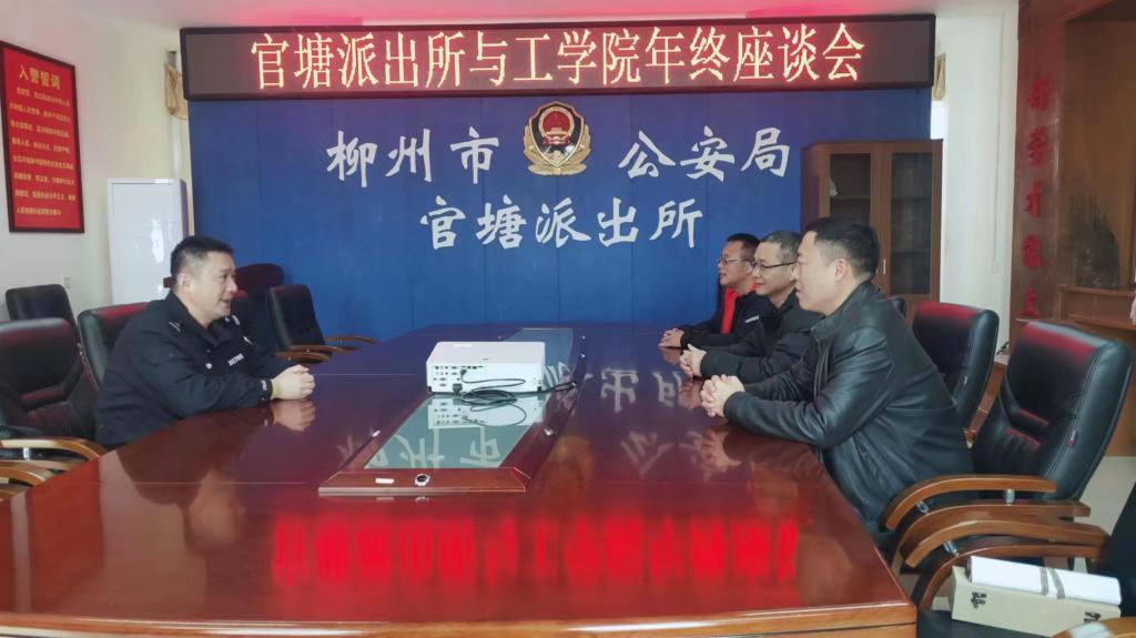 2023年1月9日上午,为共建平安和谐校园,在2023年中国人民警察节到来之际,学校副校长毛汉颖带领保卫部相关人员走访柳州市公安局官塘派出所、柳雒派出所。