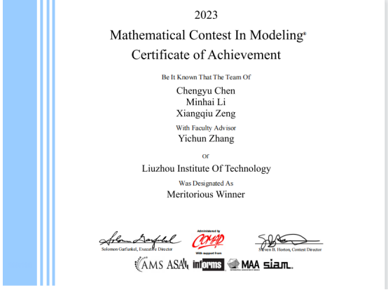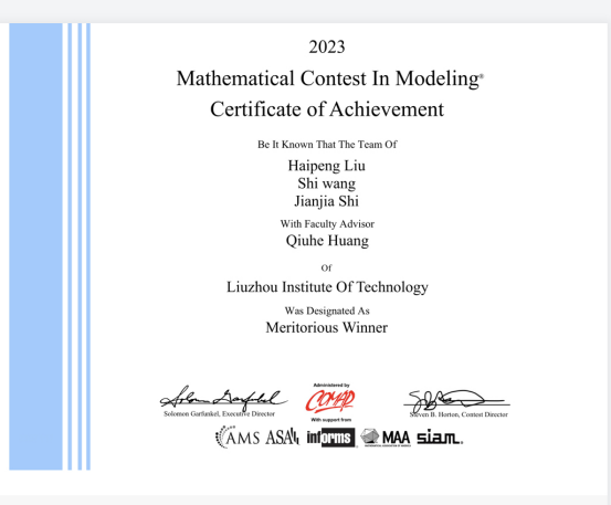 近日,2023年美国大学生数学建模竞赛(MCM/ICM)评审结果正式公布。我校黄秋和老师、张一春老师分别指导的参赛队伍在本次美国大学生数学建模竞赛中均荣获一等奖(Meritorious Winner),黄秋月老师指导的参赛队伍荣获二等奖(Honorable Mention),获奖数量和获奖等级再创新高。