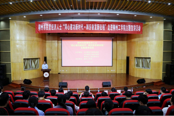 10月20日下午,由市委统战部、市委讲师团、市工商联联合举办的柳州市民营经济人士“同心建功新时代·踔厉奋发新征程”主题宣讲活动在我校南校区学术报告厅举行。市工商联党组成员、副主席、所属商会党委书记刘洪生,市工商联党组成员、秘书长薛峰,市工商联党组成员、市委统战部非公科科长陈雪玲出席活动,我校创业协会、就业促进会以及各学院师生代表近300人参加活动,学校党委委员、党委组织宣传部、统战部部长王拓主持活动。