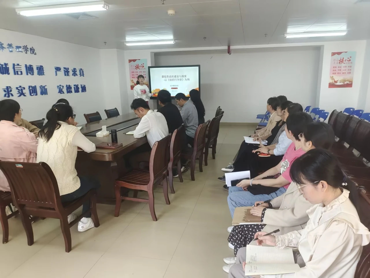 王秀卓老师首先介绍了《组织行为学》课程的建设情况,她表示,通过系统研究人在组织中的行为和态度,《组织行为学》旨在培养学生的团队合作能力、组织领导力等综合素质。同时,她还分享了课程思政示范课的建设经验,详细地讲述了如何将思想政治教育融入到专业课程中,以实现知识传授与价值引领的有机统一。在研讨环节,与会人员纷纷发言,分享了自身在课程思政示范课建设中的心得体会。大家一致认为,课程思政是一种创新的教育理念,通过将思想政治教育融入专业课程,可以更好地培养学生的综合素质和社会责任感。最后,大家针对如何加强课程思政示范课的推广力度以及提高教师的思政意识和能力等提出了一些建设性的意见和建议。