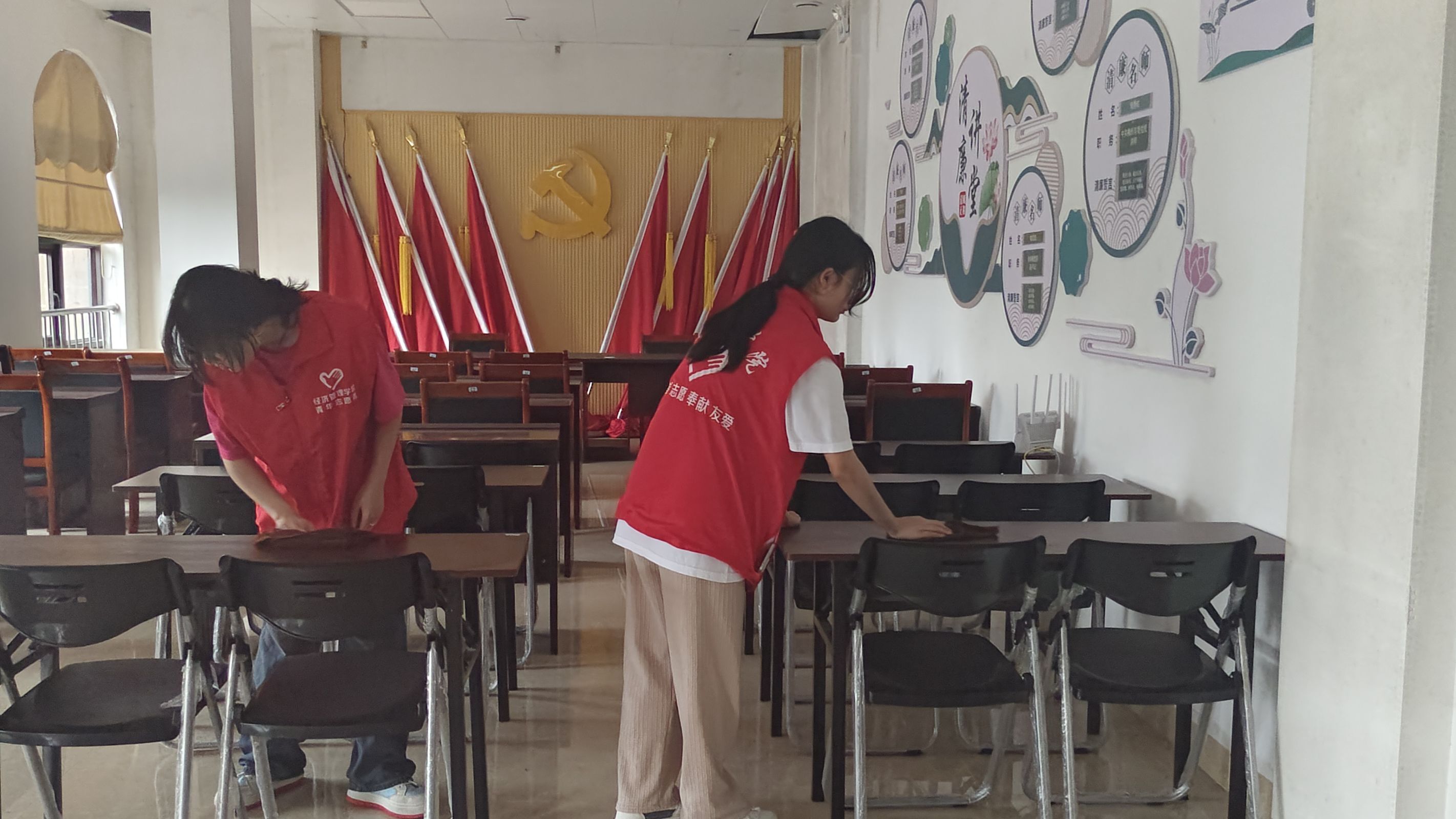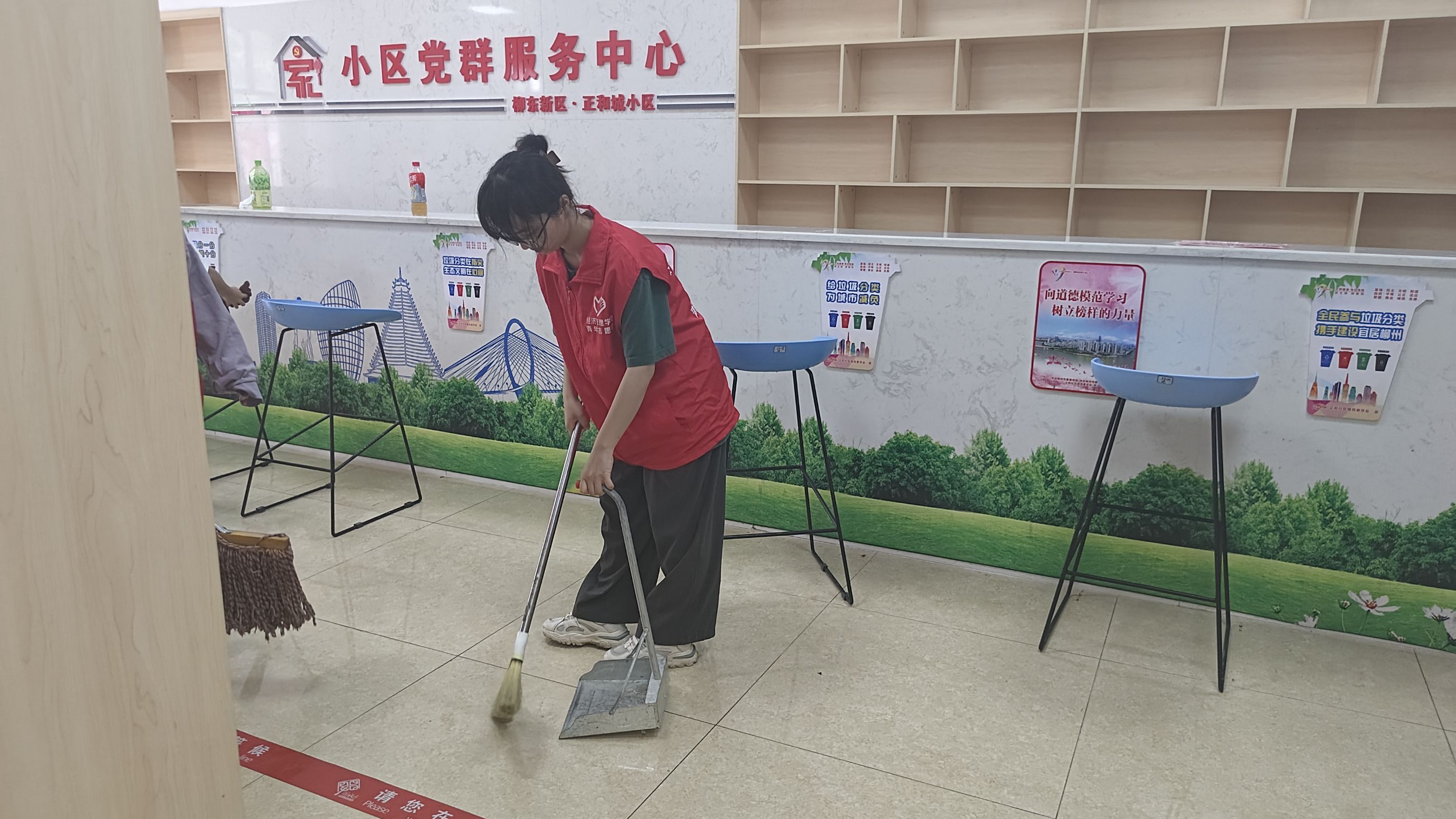 劳动过程中,志愿者们分工明确、相互协作、积极行动,充分发挥“不怕脏、不怕苦、不怕累”的优良作风,忙碌在社区的各个角落,以饱满的热情投入到劳动中。他们有的手持扫帚、拖把,将地面打扫得一尘不染;有的则手握抹布,对会议室、办公室、活动室的桌椅设施、门框、窗户进行仔细擦拭及清扫。经过志愿者们的辛勤劳动,社区的环境面貌焕然一新,大家的脸上也洋溢着幸福的笑容。