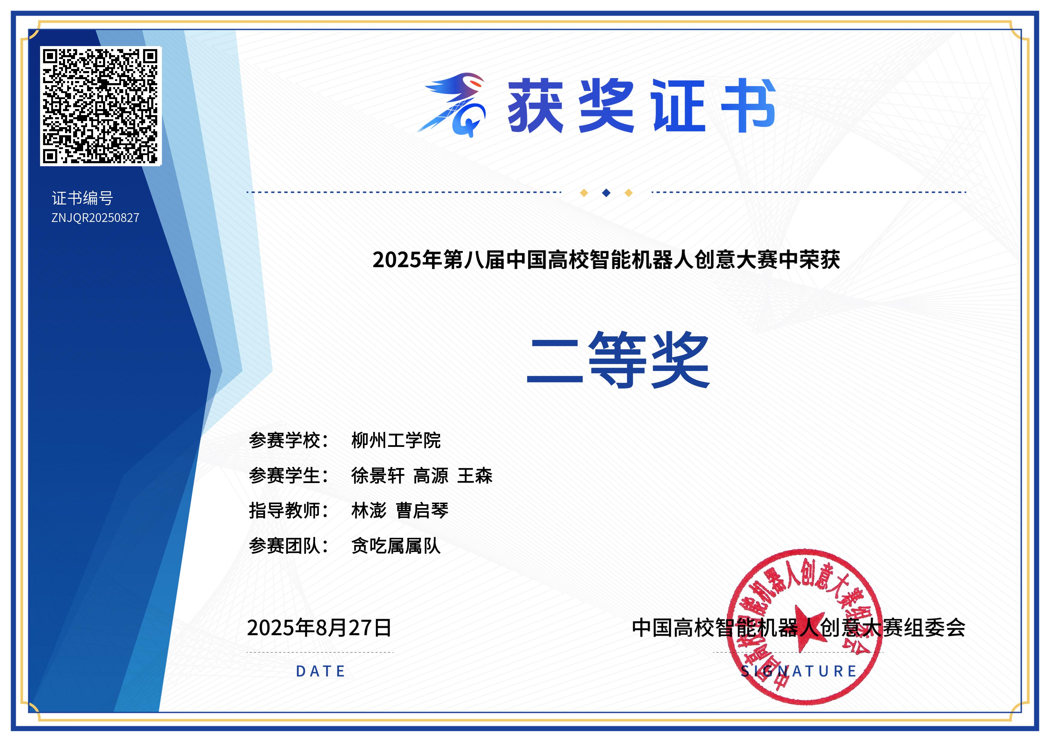 8月21日-22日,第八届中国高校智能机器人创意大赛全国决赛在浙江省余姚市举行,我校机械工程学院学子获二等奖1项、三等奖4项,成绩较往年有新突破。
