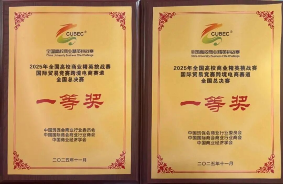 11月21日—23日,2025年全国高校商业精英挑战赛国际贸易竞赛跨境电商赛道全国总决赛在汕头举行。语言文化与国际教育学院商务英语专业两支代表队成功入围全国精英赛,并代表学校参加全国精英挑战赛总决赛。最终,两支队伍双双荣获全国商业精英赛总决赛一等奖,刷新了我校在该项赛事中的历史最佳成绩。
