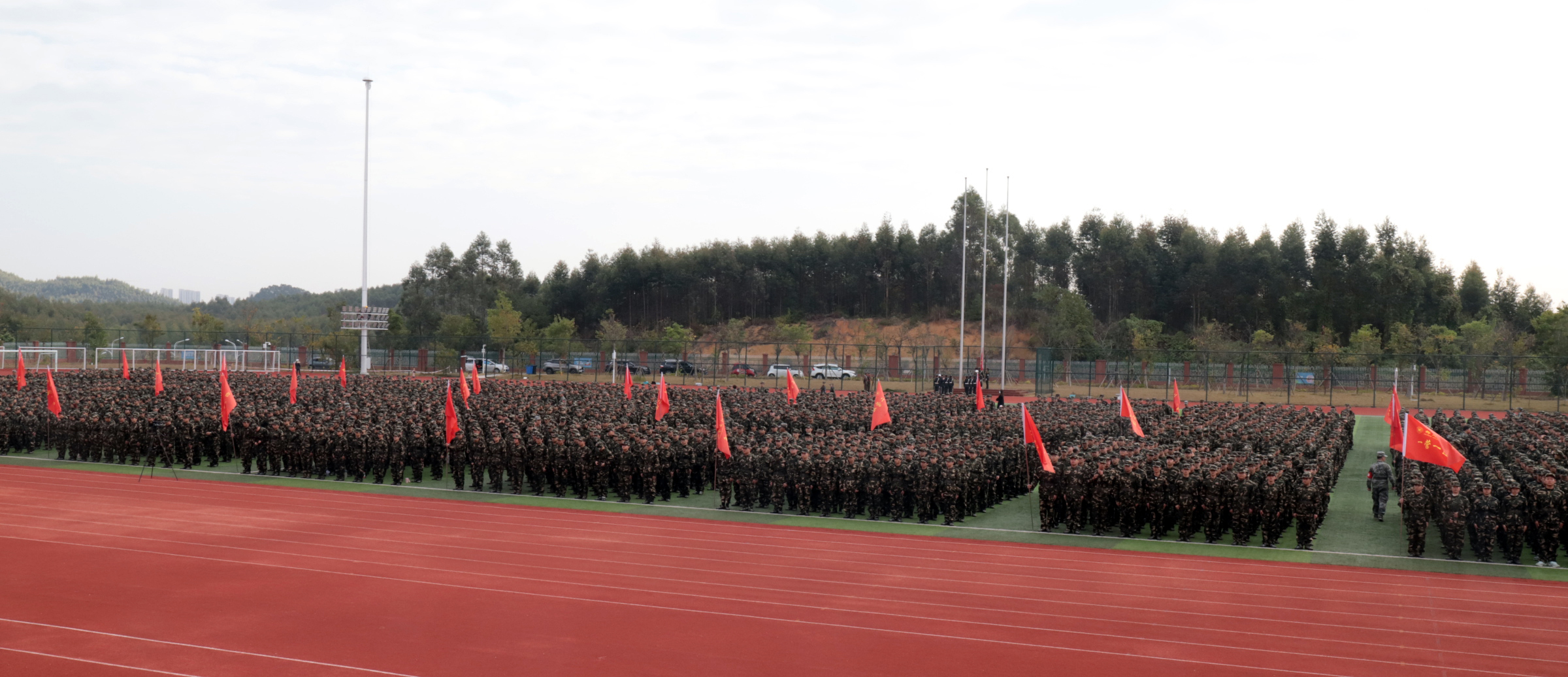 2024年1月4日上午,学校在北校区田径场隆重举行2023级学生军训动员大会。校长顾问牟海维、学校纪委书记王锦雄、副校长梁开庆,柳州军分区战建处杨祖坚中校,柳州军分区民兵应急营副营长陈德华,党政办公室、组织宣传部、后勤基建处,保卫处等主要负责同志以及各学院党总支书记,全体军训教官、指导员,2023级全体参训学生共计3500余人参加了开训动员大会。大会由学生工作部部长刘云辉主持。